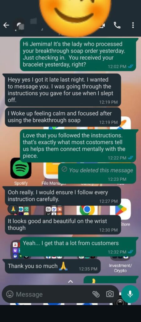 The Breakthrough Soap works by cleansing your spiritual field, removing what’s blocking you, and realigning you with good fortune and open doors.